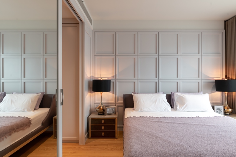 ตัวอย่างของห้องนอนน่าจะเป็นอีกหนึ่งนิยามของคำว่า Modern Timeless ได้เป็นอย่างดี คือเป็นการออกแบบที่ร่วมสมัย แต่ไม่เยอะจนเกินไป และไม่น้อยจนเกินไป ยังคงใส่ใจเพิ่ม Details ให้กับจุดต่างๆ เพื่อไม่ให้ห้องดูน่าเบื่อ เช่น การกรุผนังหัวเตียงที่มีสีขาวกลืนไปกับผนัง แต่ยังคงมีลวดลาย texture ที่เพิ่มความน่าสนใจขึ้นมาได้