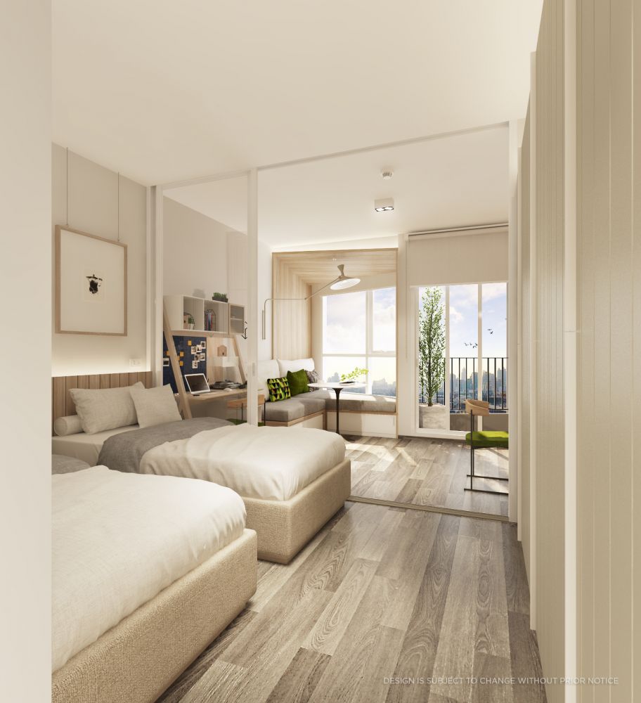 ในส่วนของ Triple Y Hotel มีขนาดห้องพักเริ่มต้นที่ Superior Room 17 ตร.ม. พร้อม Common Area สำหรับนั่งเล่น พูดคุย และทานอาหารร่วมกันได้ครับ พร้อมระเบียงดีไซน์เฉียงเพื่อให้ง่ายต่อการเทควิวเมืองอีกด้วย