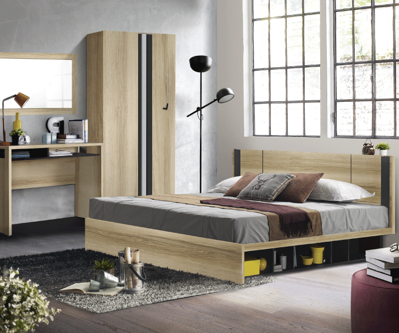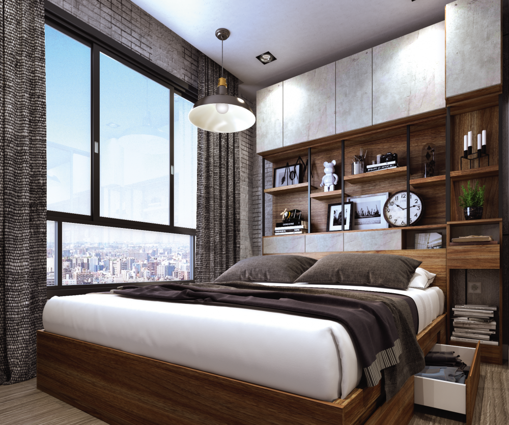 บางทีการลดทอนรายละเอียดที่ไม่จำเป็นก็เป็นอีกหนึ่งเสน่ห์ในการตกแต่งห้องได้อย่างไม่น่าเชื่อ โดยทาง Koncept ได้ออกแบบเซ็ตเฟอร์นิเจอร์ชิ้นนี้ได้อย่างเรียบง่ายด้วยการเลือกใช้สีโทนอุ่นตัดกับลายไม้ที่สอดแทรกความเป็นโมเดิร์นเล็กน้อยออกมาได้อย่างลงตัวสุดๆ และยังซ่อนฟังก์ชั่นการใช้งานได้อย่างสมบูรณ์แบบไม่ว่าจะเป็นช่องใส่ของใต้เตียง ตู้เสื้อผ้าขนาดขนาดกำลังดีที่ตกแต่งด้วยลายไม้ เพิ่มลูกเล่นบิวท์อินสีดำเพื่อเพิ่มให้ลุคโมเดิร์น นี่สิถึงเป็นการดีไซน์เฟอร์นิเจอร์ที่สะท้อนแนวคิด Less is more ได้เฉียบสุดๆ