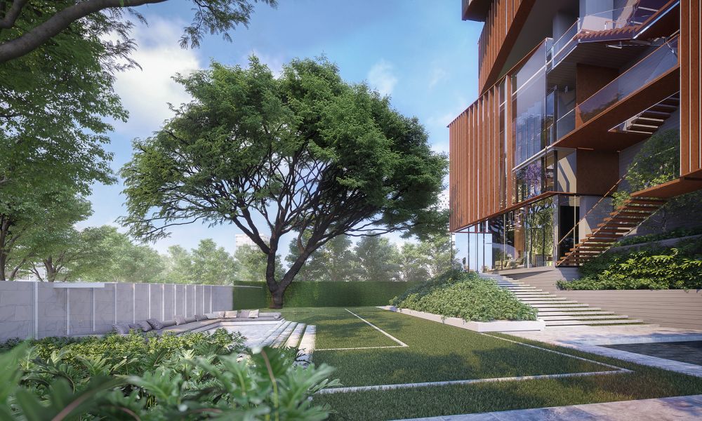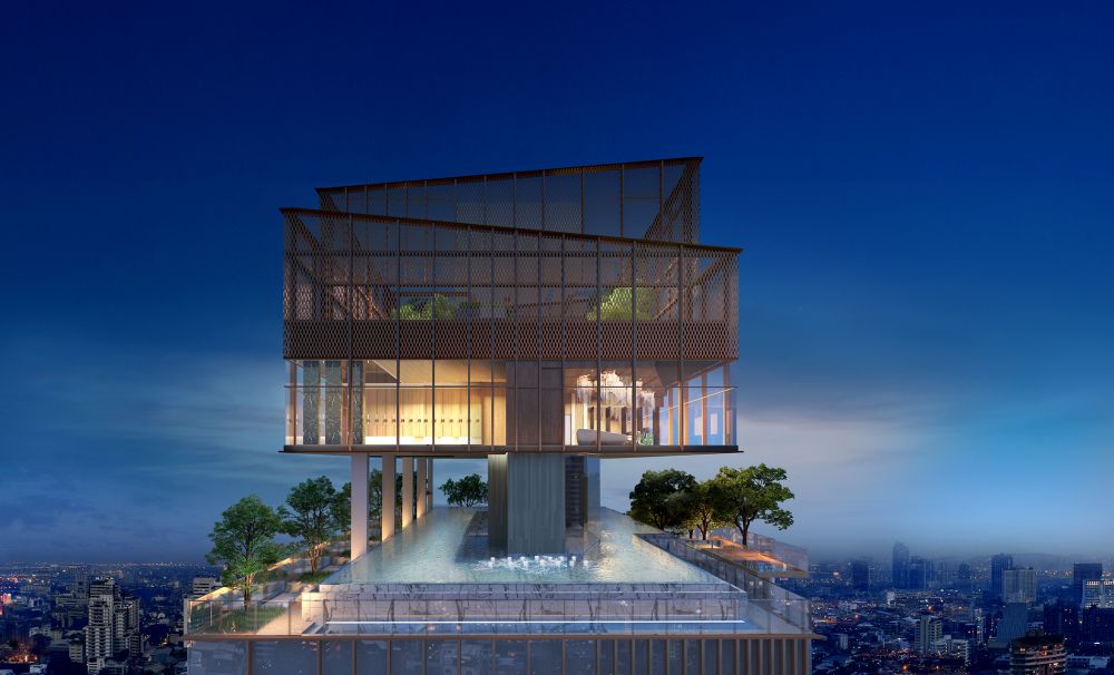นอกจากจะเปรียบเสมือนสวนแนวตั้งขนาดใหญ่แล้ว ยังเป็นสวนแนวตั้งขนาดใหญ่ที่ดีไซน์ให้มีการเล่นระดับ เพิ่มพื้นที่พักผ่อนและเปิดมุมมองรับวิวกรุงเทพฯ ในมุมสูงได้หลากหลายมากยิ่งขึ้น มีการออกแบบให้มี พื้นที่สวนสีเขียวลอยฟ้า ยื่นออกมาเป็นระเบียงได้เป็นจังหวะ ผสานกลมกลืนกับโทนสีน้ำตาล เทา และกระจกใส