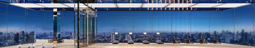 อีกหนึ่งไฮไลท์ของโครงการ ก็เห็นจะเป็นพื้นที่ส่วนกลางในชั้น 31 และ 32 ที่มีทั้งฟิตเนสลอยฟ้าแบบเปิดรับวิวได้ 360 องศา มีทั้งโซนอุปกรณ์และห้องโยคะ แบ่งกั้นส่วนด้วยประตูกระจกบานพับทรงสูง