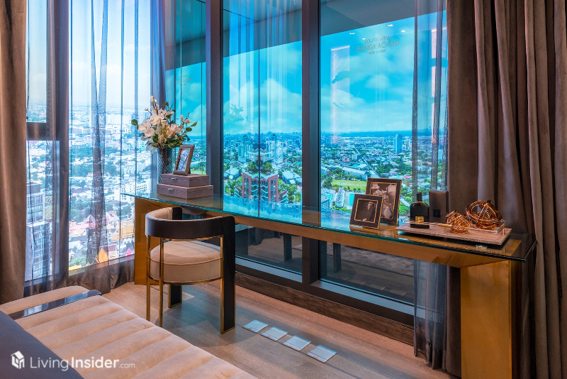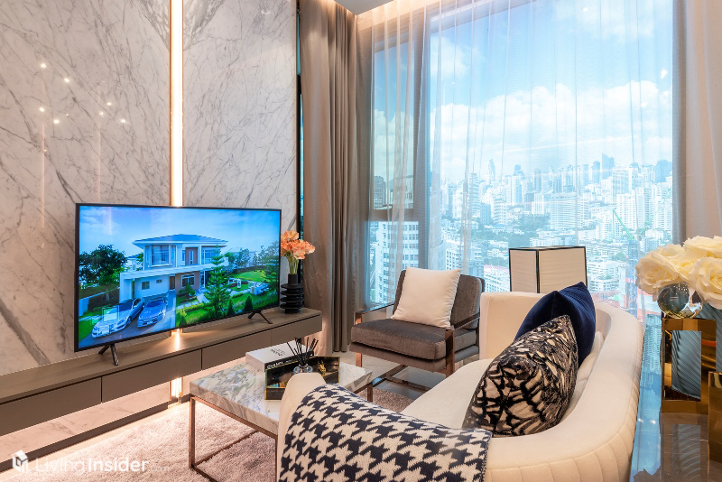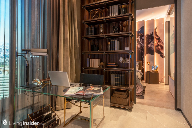 ส่วน Tea Lounge ออกแบบด้วยลายหินอ่อนแทรกกับสีทอง ให้อารมณ์ลักชัวรี่ พร้อมมีหน้าต่างแบบ Full High ให้สามารถจิบชาไปเทควิวเมืองไป