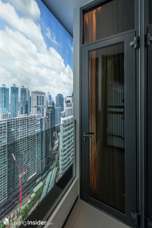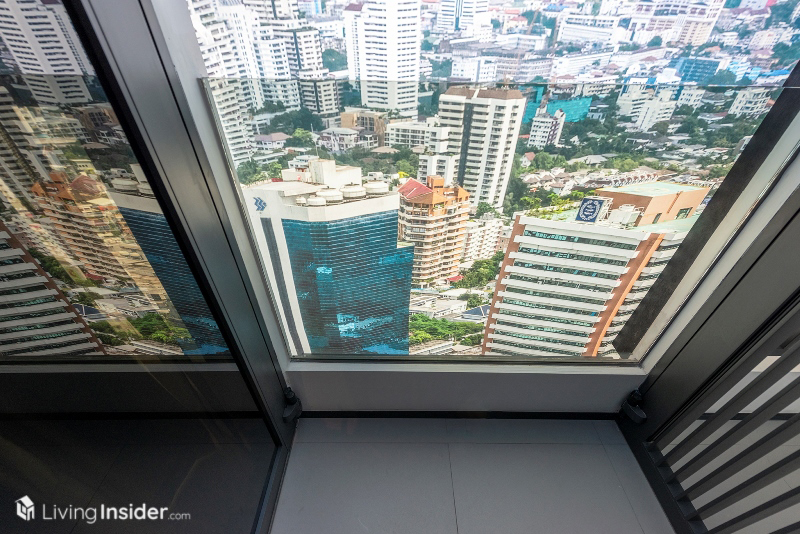 ระเบียงขนาดกำลังดีสามารถใช้ตากผ้าหรือออกมายืนชมวิวได้สบายๆ มีราวกันตกเป็นกระจกทั้งหมดให้ครับ