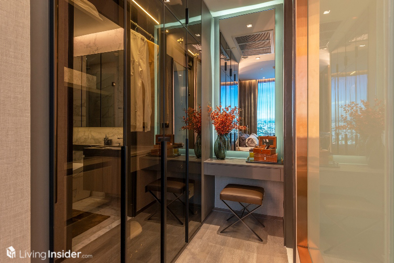 ส่วนด้านในคือ Walk-In Closet พร้อมมีพื้นที่วางโต๊ะเครื่องแป้งเพิ่มเข้ามา ซึ่งส่วนนี้จะเชื่อมกับห้องน้ำครับ
