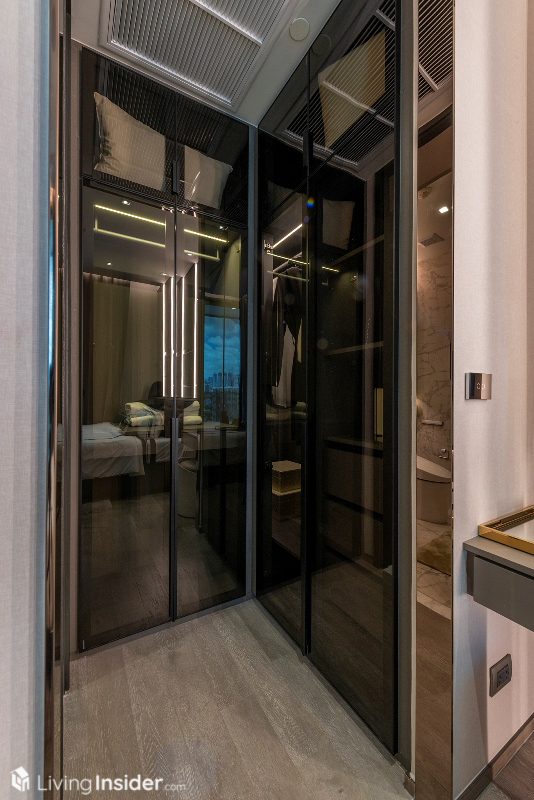 ส่วนด้านในคือ Walk-In Closet ทรง L-Shape และเป็นส่วนที่ทะลุไปยังห้องน้ำหลักครับ