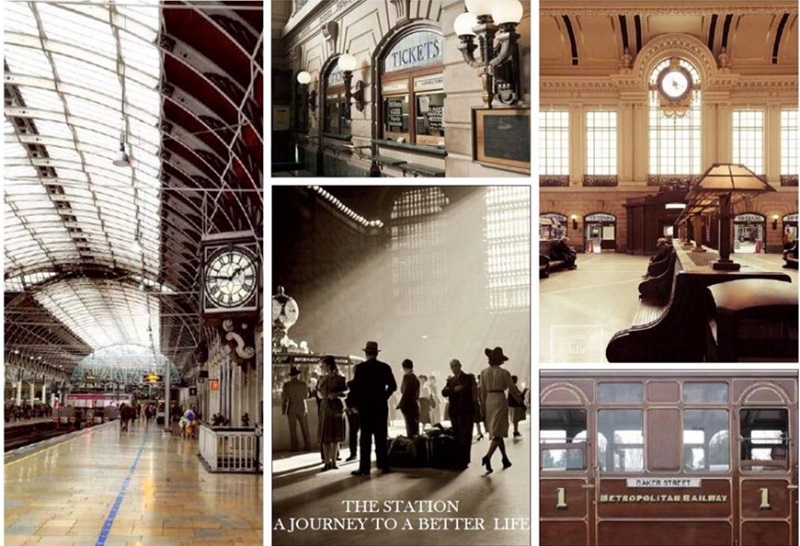 วัสดุเลือกสีโทนน้ำตาลและขาวครีม ตัดกับ สีอลูมิเนียม Antique Copper เพิ่มเสน่ห์ และความหรูหราให้อาคารทั้งภายในและภายนอก ดึงอารมณ์ให้เหมือนกลับไปอยู่ในยุคคลาสิค ที่สถานีรถไฟเป็นเหมือนที่พบปะของกลุ่มคนที่หลากหลาย เป็นจุดเริ่มต้นทั้งการเดินทางและชีวิต “The Station Jurney to A Better Life” ในทำเล Interchange รถไฟฟ้าสีเหลือง และสีน้ำเงิน