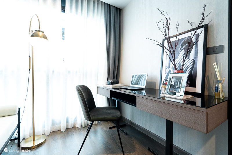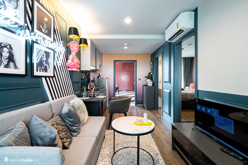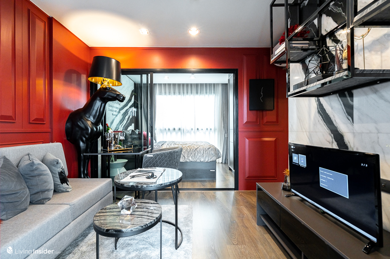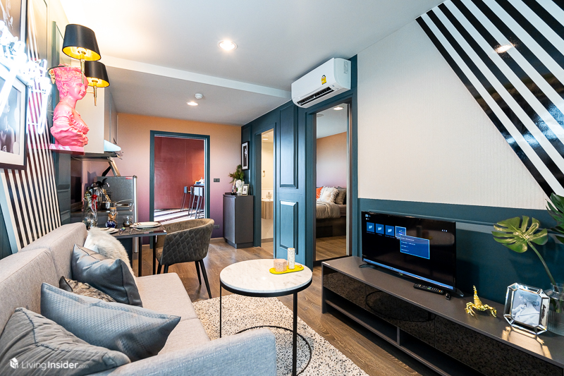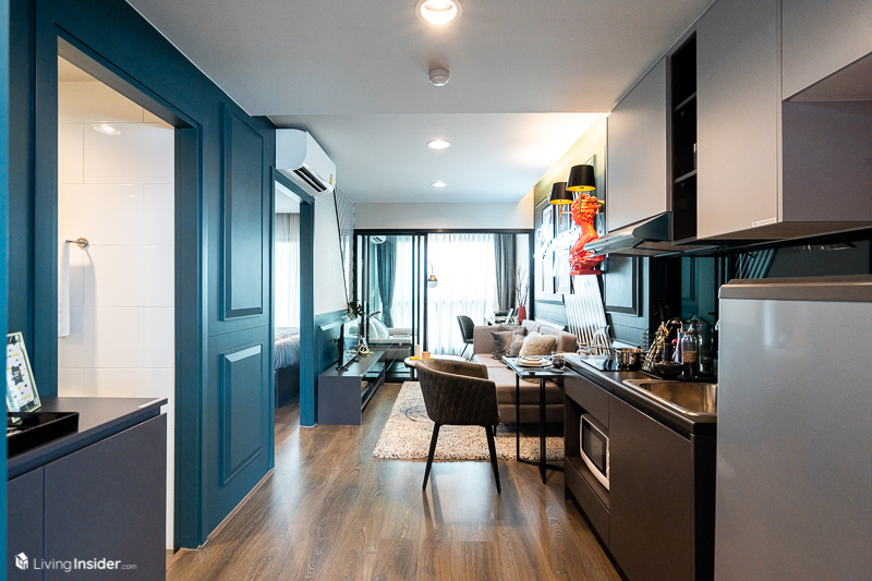 Layout มาตรฐาน 1-Bedroom แบ่งสัดส่วนชัดเจน พร้อมครัวแยก ทำกับข้าวกินเองแบบไม่กลัวห้องมีกลิ่น เหมาะกับอาศัย 1-2 คนกำลังพอดี