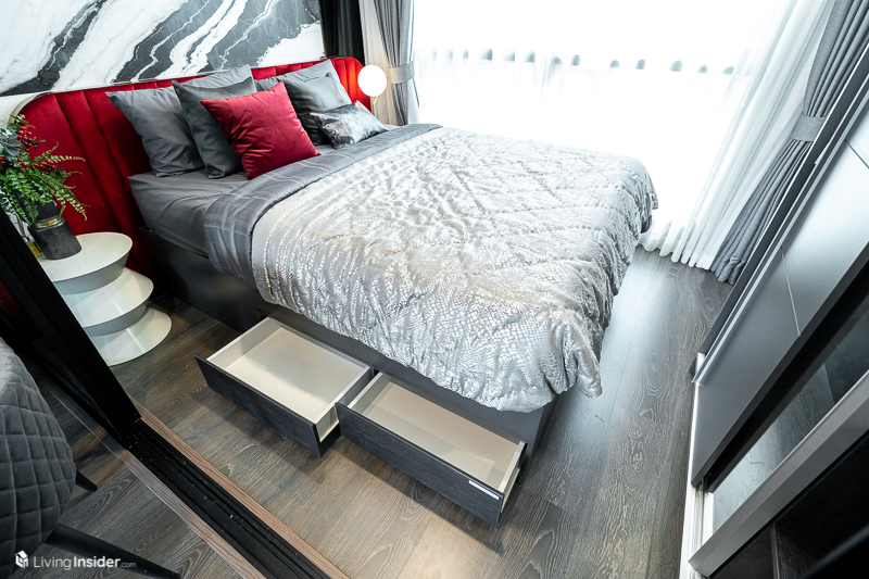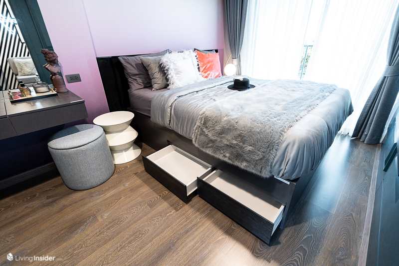 เตียงนอนที่ให้เป็นเตียงแบบมัลติฟังก์ชั่น มีช่องเก็บของในตัวเหมือนกับ 1 Bedroom