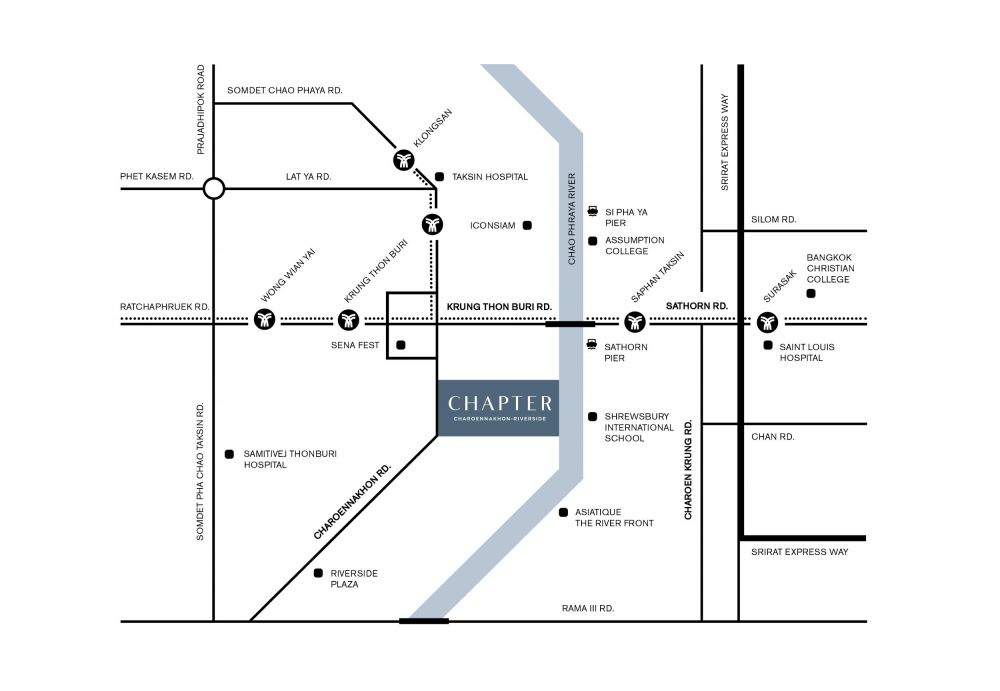 นอกจากนี้ Location ไม่เป็นที่สองรองใคร Chapter เจริญนคร ริเวอร์ไซด์ แวดล้อมด้วยสถานที่สำคัญ แหล่งช้อปปิ้งหลายแห่ง ไม่ไกลจาก CBD สาทร-สีลม ทางโครงการมี Shuttle Boat รับส่ง BTS สะพานตากสิน เป็นอีกทางเลือกนอกจากขับรถส่วนตัว