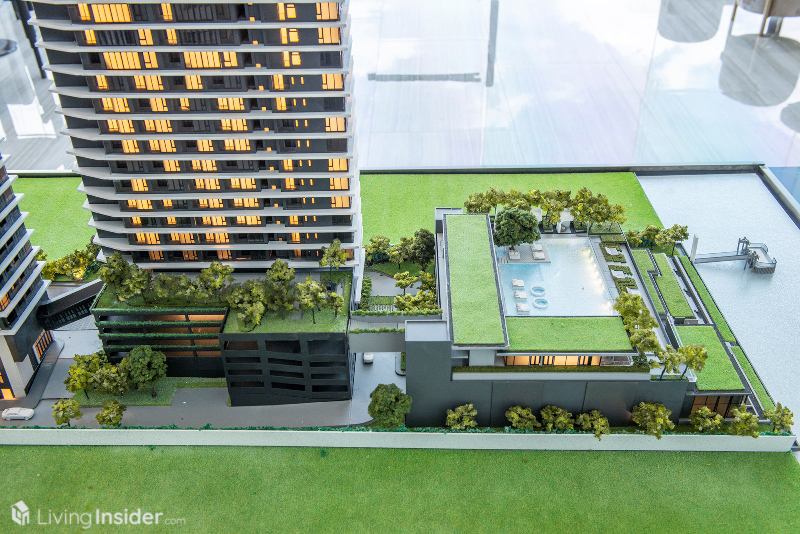 ส่วนอาคาร Faciltiies หลัก ที่พักอาศัยเริ่มชั้น 7-44 และ Sky Lounge บนชั้น 45 เทควิวเมืองได้แบบ 360 องศา