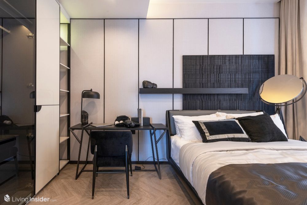 และห้องนอนที่ 3 ขนาดเล็กสุดครับ แต่ก็ถือว่ากว้างอยู่ดี มีพื้นที่วางเตียงขนาด 5 ฟุต ตู้ข้างเตียง โต๊ะอเนกประสงค์, ตู้เสื้อผ้าบิวท์อิน ทั้งนี้ยังมีห้องน้ำในตัวด้วย เทียบขนาด 1-Bedroom ได้เลย