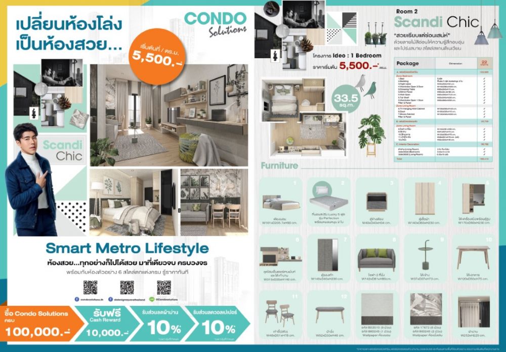 ย้ำว่าตามแบบตัวอย่างห้องนี้ทั้งหมดเพียง 5,500 บาท / ตร.ม. เท่านั้น ซึ่งห้องตัวอย่างนี้ขนาด 33.5 ตร.ม. การตกแต่งที่เห็นนี้ทั้งหมดรวมเฟอร์นิเจอร์ รวมทุกอย่างแล้วเพียง 184,250.- คุ้มกว่านี้ไม่มีอีกแล้ว ดูสไตล์การตกแต่งห้องเพิ่มเติมได้ที่ Condo Solutions