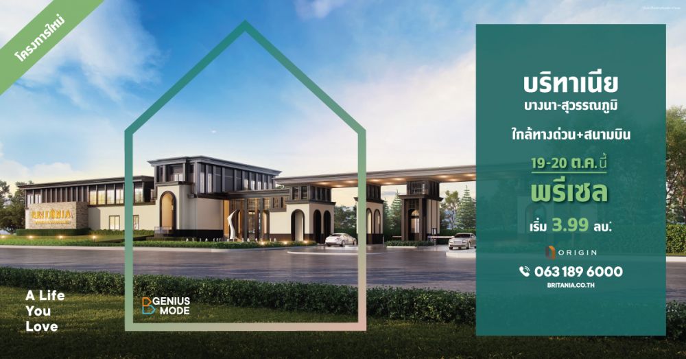 แต่โอกาสมักมีอยู่เสมอในเวลาที่เหมาะสม เพราะล่าสุดผมได้ยินมาว่ากำลังจะมีโครงการใหม่ “BRITANIA บางนา-สุวรรณภูมิ” นอกจากจะโลเคชั่นดีมากๆแล้ว เค้ายังออกแบบบ้านได้ถูกอกถูกใจคนรุ่นใหม่มากๆ และที่สำคัญเลยคือ ราคาที่คุณเห็นแล้วจะต้องรีบจองกันเลย