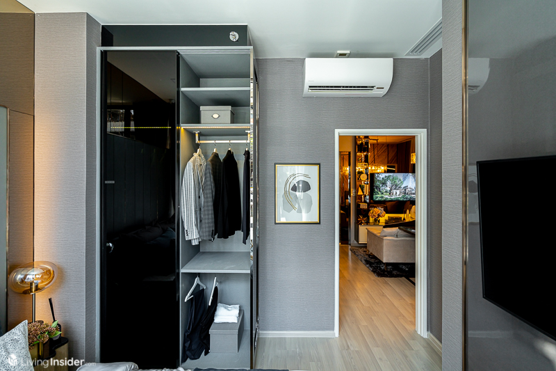 มาส่อง Master Bedroom กันครับ ทีเด็ดคือ กระจกเข้ามุม เทควิว 270 องศา ขนาดห้องกว้างขวาง สามารถจัดวางเตียงขนาด 5 ฟุต ตู้เสื้อผ้วบิวท์อิน ได้แบบลงตัว
