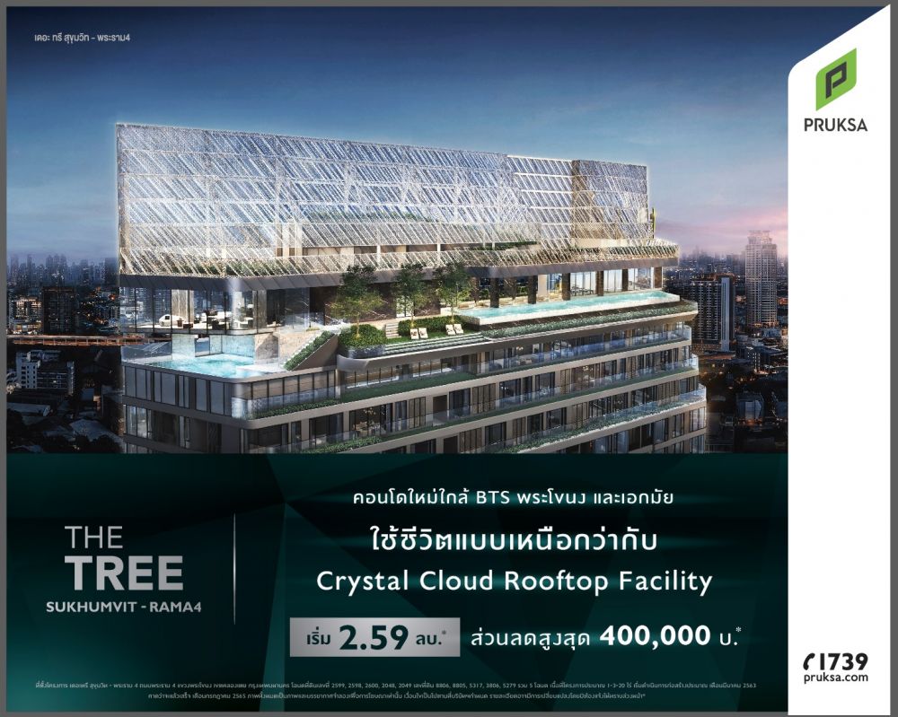 แบรนด์ The Tree เป็นอีกแบรนด์ของ Pruksa ที่ผมบอกได้เลยว่า น่าจับตามองมากๆ เพราะเค้าใจถึงและให้คุณภาพคับแก้วระดับ Luxury ในราคาที่คนรุ่นใหม่จ่ายได้แบบ Easy จนหลายๆที่ขายดีมากๆ คนที่ซื้อไปอยู่เองทุกคนบอกว่า คุ้มค่าเงินมาก ส่วนคนที่ซื้อลงทุนก็ได้กำไรไม่ว่าจะขายต่อ หรือปล่อยเช่าก็ง่าย