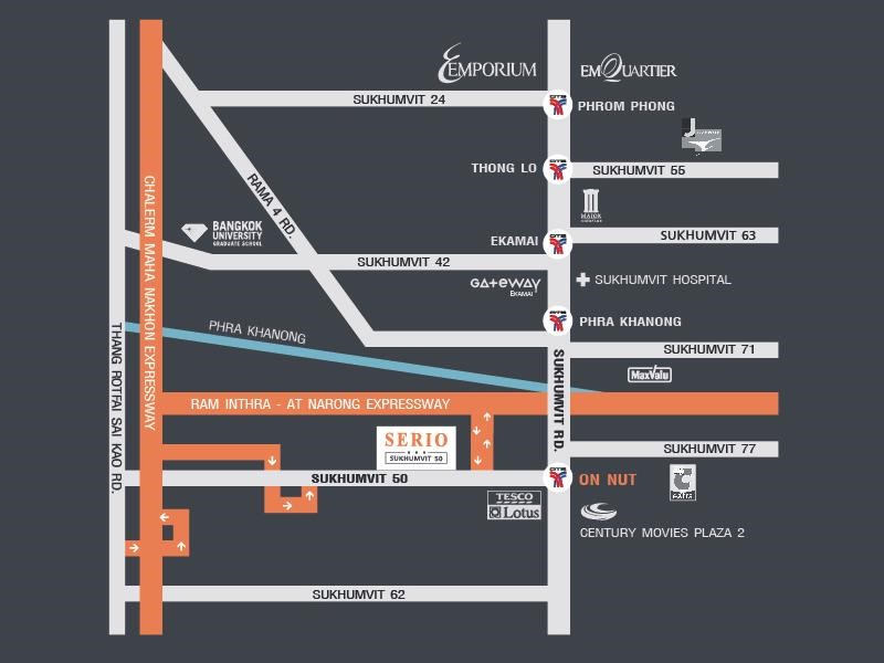 บน Location ฮ็อตแห่งทศวรรษ ‘อ่อนนุช’ ห่างจาก BTS เพียง 300 เมตร เดินซื้อของ Tesco Lotus ทานข้าว ช้อปปิ้ง ดูหนัง Century Movie Plaza หรือหาร้านนั่งชิล Hangout ก็หาไม่ยากครับ นอกจากนี้ Serio สุขุมวิท 50 ยังอยู่ใกล้จุดขึ้นทางด่วน (ฉลองรัช) เพียง 3 นาที สามารถใช้เส้นทางลัด (ถ.ทางรถไฟสายเก่า) ออกพระราม 4 - คลองเตย เดินทางสะดวกมากๆ