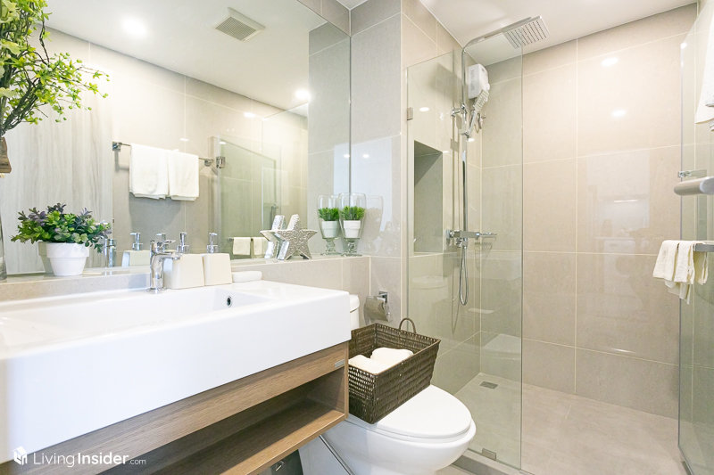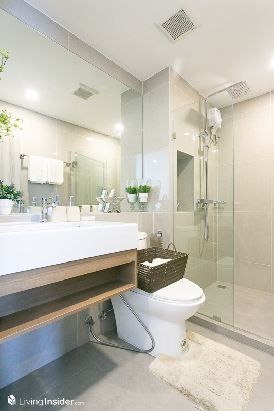 ส่วนภายใน ห้องน้ำ จัดเต็มทั้งกระจกบานใหญ่ ช่องเก็บของใต้อ่าง ธรณี - ช่องผนังวางของใช้ส่วนตัว พร้อมฉากกั้นกระจกนิรภัย และ Rain Shower สุขภัณฑ์ทั้งหมดใช้ของ Hafele ครับ