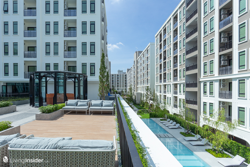 เฉิดฉายด้วย Facility ที่ให้พื้นที่มามากถึง 2,198 ตร.ม. นับว่ามีขนาดใหญ่ที่สุดที่แบรนด์ Aspire เคยสร้างมาก็ว่าได้ โดยแยกส่วนกลางออกมาเป็นคลับเฮ้าส์วางไว้ตรงกลางของคอนโด เพื่อให้ลูกบ้านแต่ละอาคารใช้งานได้อย่างทั่วถึง