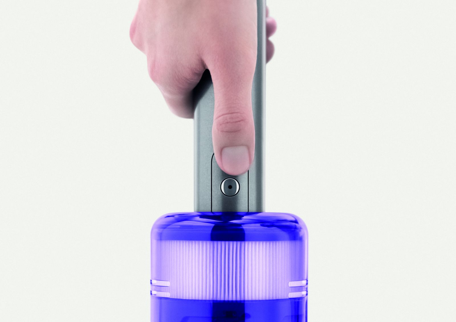 ขณะเดียวกันก็มีการปรับเปลี่ยน วิธีการเปิดปิดเครื่อง จากรุ่นอื่นที่เวลาใช้งานจะเป็นตัวกดทริกเกอร์ต้องกดค้างไว้ตลอดเวลา ก็ออกแบบให้เป็นปุ่มคลาสสิกแทน โดยมี 2 ปุ่ม คือ ปุ่มเปิด-ปิดเครื่อง และปุ่มเลือกโหมดระดับความแรงแบบ Eco และ Max ซึ่งทำให้ผู้ใช้สลับมือขณะดูดฝุ่นได้โดยที่เครื่องไม่ต้องหยุดทำงาน