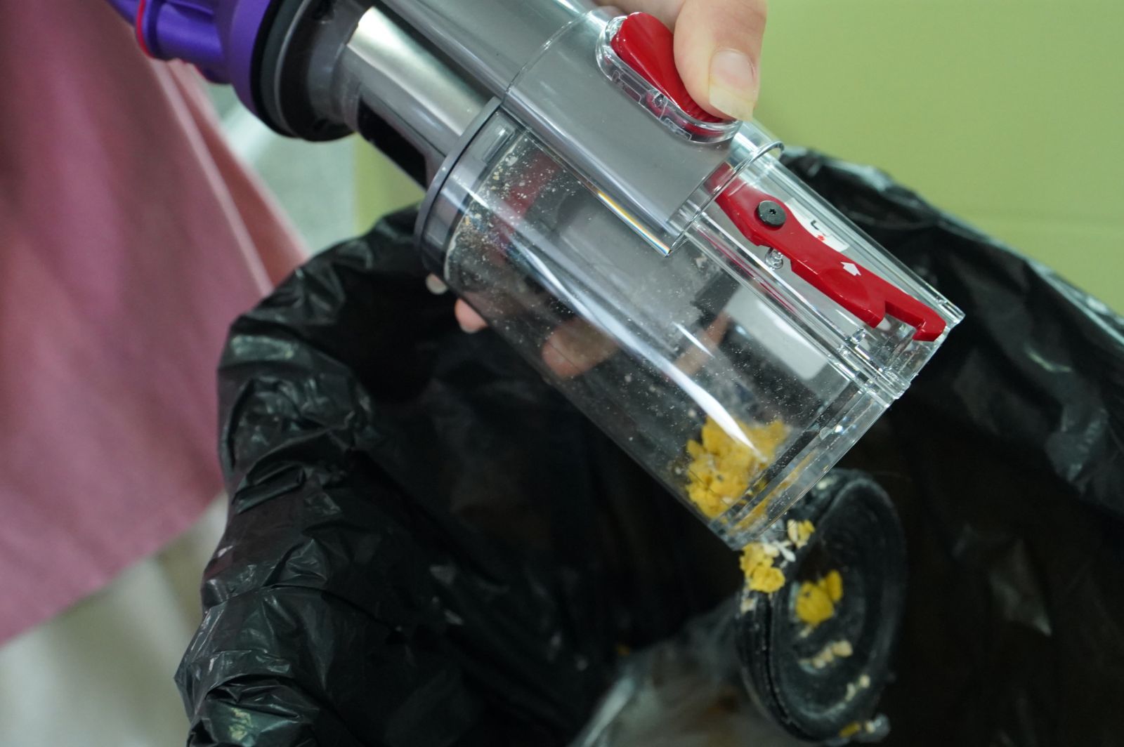 และยังคงคอนเซ็ปต์ของ ถังเก็บฝุ่น ด้วยการดีดออกพร้อมตัวจับแบบหมุน ช่วยให้เทฝุ่นออกเพียงครั้งเดียว ส่วนปลอกซิลิโคนผ้าห่อตาข่าย มีไว้เพื่อไม่ทำให้มือสกปรกเปื้อนฝุ่นตอนเทออก และเมื่อเราอยากทำความสะอาดก็ไม่ต้องกลัวพัง เพราะสามารถล้างถัง ตัวกรอง แถบแปรง และเครื่องมือต่างๆ ได้หมด แต่อย่าลืมไปตากหรือเช็ดให้แห้งด้วยนะ