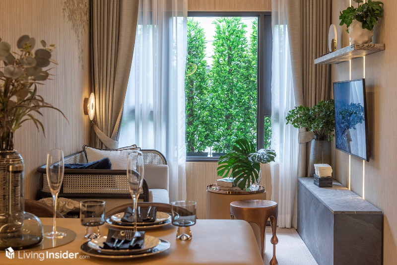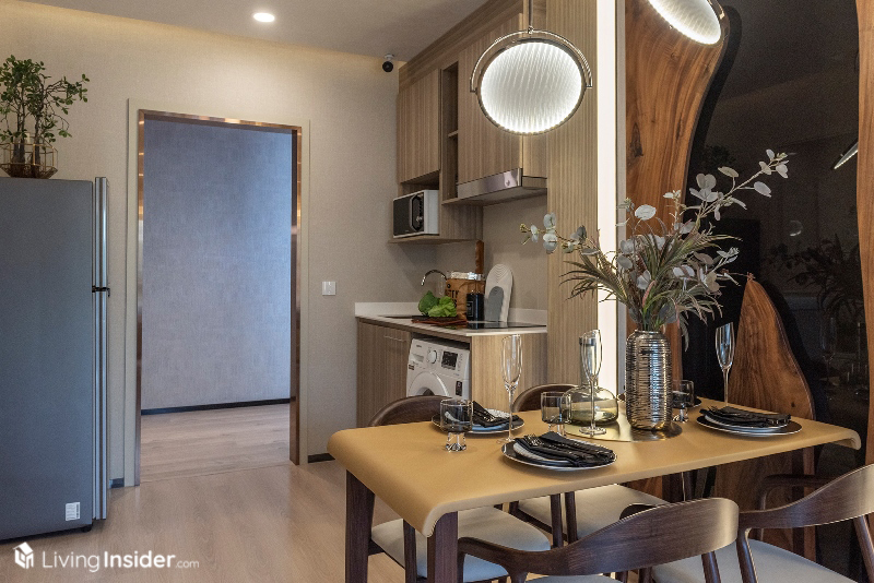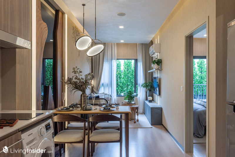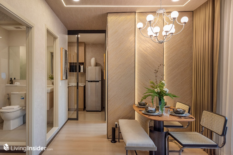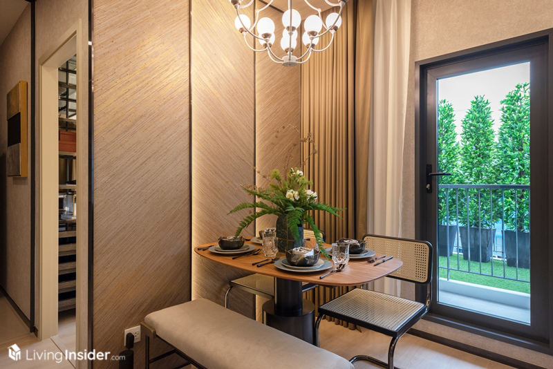 เชื่อมต่อไปยังส่วนของพื้นที่รับประทานอาหาร ซึ่งสามารถวางโต๊ะกินข้าวขนาด 4 ที่นั่ง ได้แบบสบายๆ และยังมีพื้นที่ว่างให้เดินได้แบบเหลือเฟือ