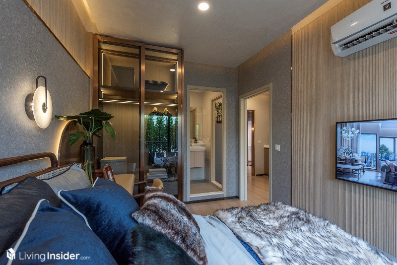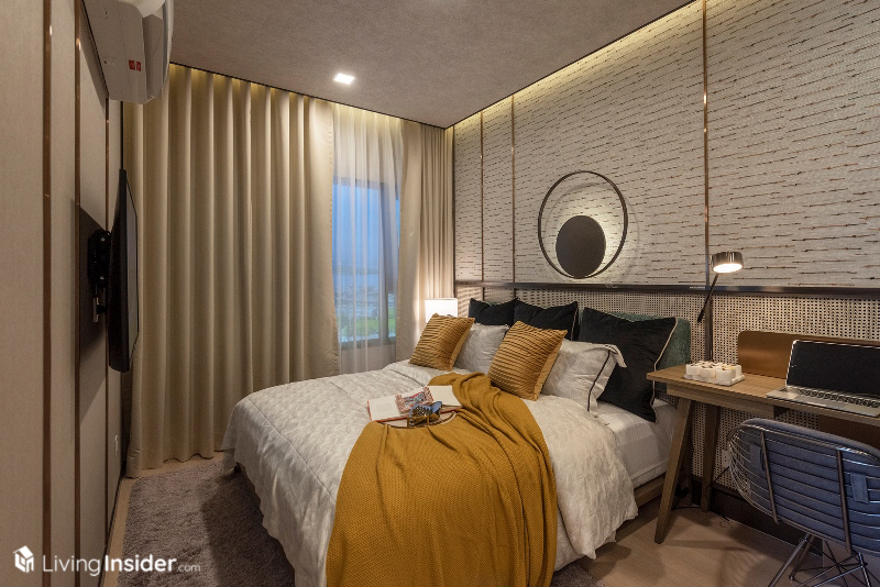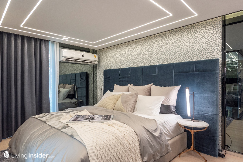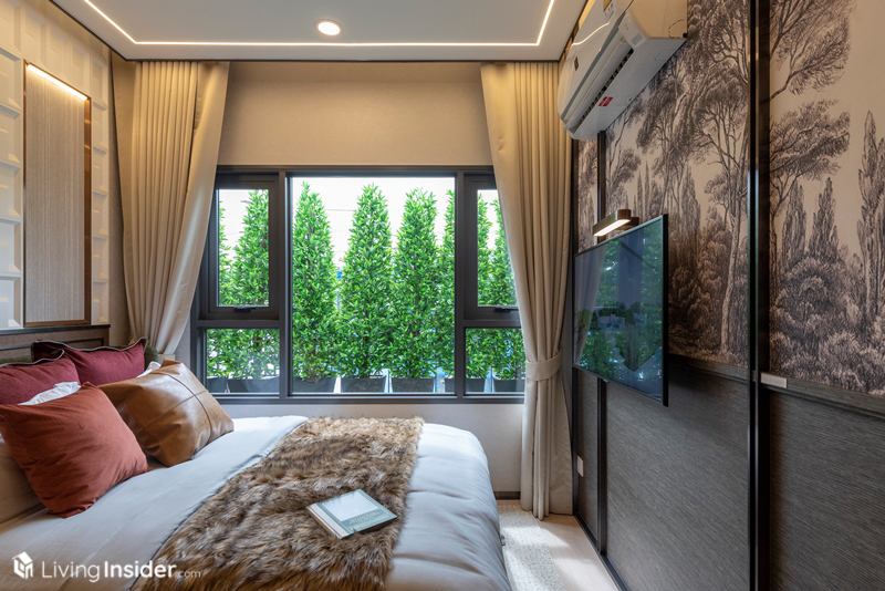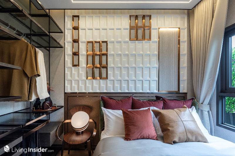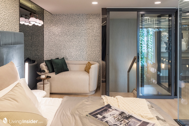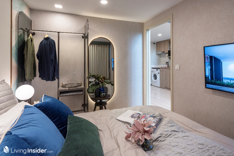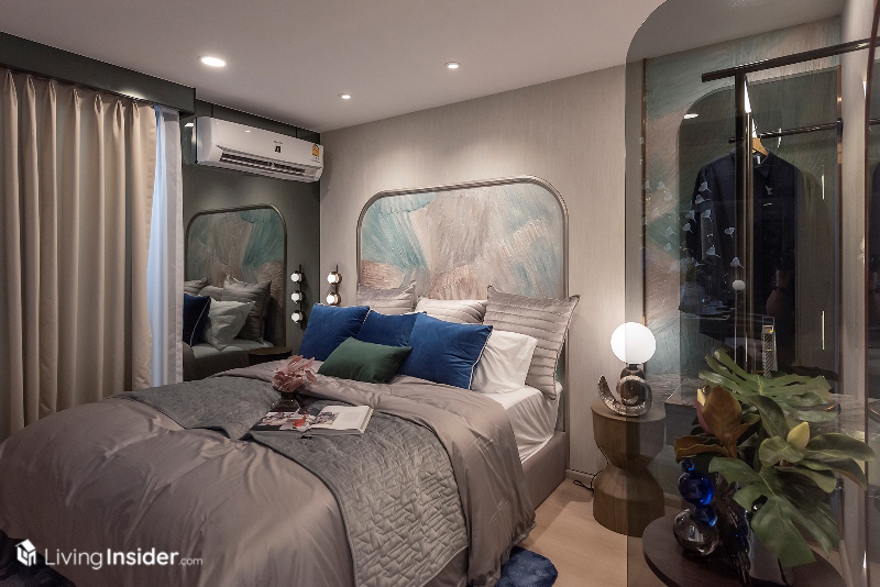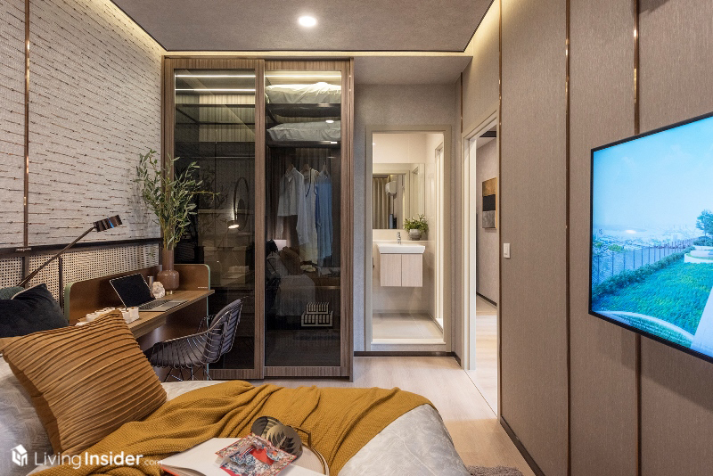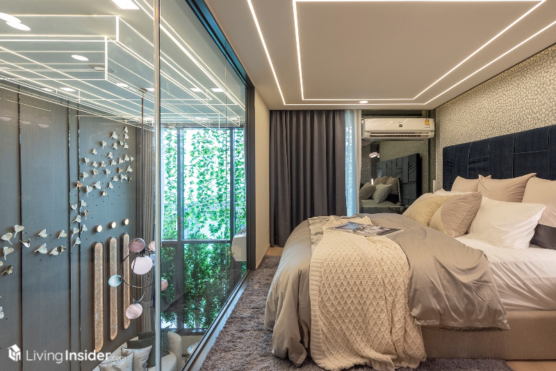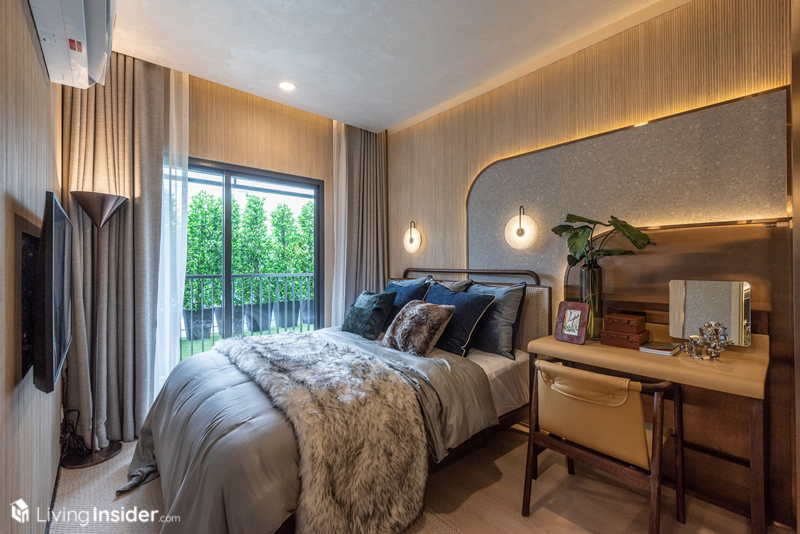 ขณะที่ ห้องนอน เลือกวางได้ทั้งเตียง 5 ฟุต หรือ 6 ฟุต และยังวางโต๊ะเครื่องแป้ง รวมถึงตู้เสื้อผ้าได้แบบที่ผู้อยู่จะไม่รู้สึกอึดอัดแต่อย่างใด เนื่องจากมีพื้นที่ค่อนข้างกว้างขวาง แถมยังได้แสงธรรมชาติจากระเบียงด้านนอก ยิ่งทำให้ห้องนี้น่าอยู่เข้าไปใหญ่