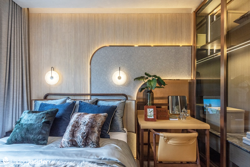 ปิดท้ายด้วย Master Bedroom ที่ส่วนใหญ่ห้องนี้มักจะอยู่กัน 2 คน ดังนั้นวางเตียง 6 ฟุตได้เลย หรือถ้าใครอยากได้พื้นที่เพิ่มจะเลือกเตียง 5 ฟุตก็เพียงพอ สำหรับโต๊ะเครื่องแป้งจะอยู่ฝั่งเดียวกับหัวเตียง ส่วนตู้เสื้อผ้าจะอยู่ติดกัน ซึ่งสามารถเก็บเสื้อผ้าได้พอสมควร