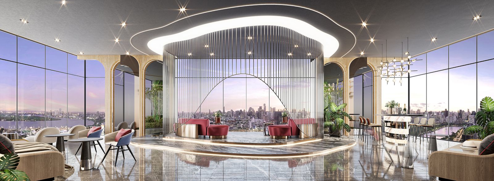 นอกเหนือจากนี้ Facilities จะขึ้นไปอยู่ที่ชั้น 36-39 โดยชั้น 36 จะประกอบด้วย The Circular Lounge ห้องนี้นี่ส่วนตัวอยากเห็นของจริงเลยคงจะสวยน่าดู เพราะถูกห้อมล้อมด้วยกระจกใสที่จะรับกับวิวเมืองให้เราได้เห็นแบบเต็มสายตา อีกทั้งยังสามารถนำเครื่องดื่มและของกินเล่นมานั่งกินที่นี่ได้อีกด้วยรับรองฟิน