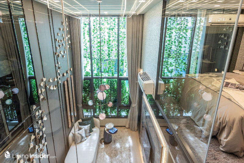 แต่ที่ชอบคือการให้ช่องแสงมาแบบจัดเต็ม เป็นกระจกเข้ามุมบานใหญ่ ซึ่งจะช่วยให้แสงธรรมชาติส่องเข้ามาได้อย่างทั่วถึง ตัวห้องเองก็ดูโปร่งโล่งสบายตา