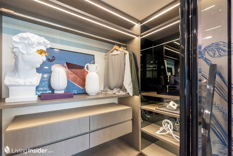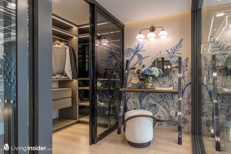 อีกฝั่งหนึ่งคือ Walk-in Closet ที่เป็นห้องแต่งตัวจริงๆ ต่อให้เสื้อผ้าเยอะแค่ไหนก็เก็บได้พอแน่นอน พร้อมพื้นที่ขนาดกำลังพอเหมาะที่เอาไว้สำหรับวางโต๊ะเครื่องแป้ง