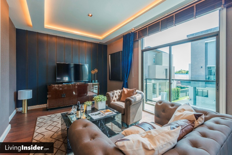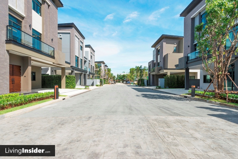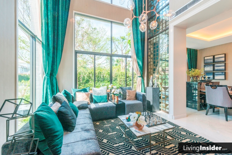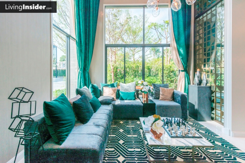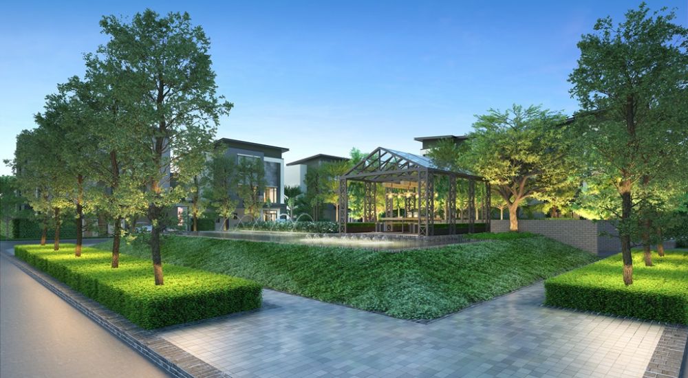 อย่างเช่น บ้านแฝดแบบ Queens เนื้อที่ประมาณ 46 ตารางวา พื้นที่ใช้สอย 302 ตร.ม. 3 ห้องนอน 4 ห้องน้ำ 2 ส่วนพักผ่อน 3 ที่จอดรถ