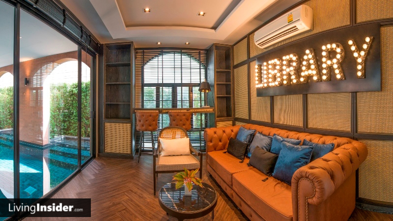 มีส่วนของห้องสมุด เชื่อมต่อกับพื้นที่ของสระว่ายน้ำ