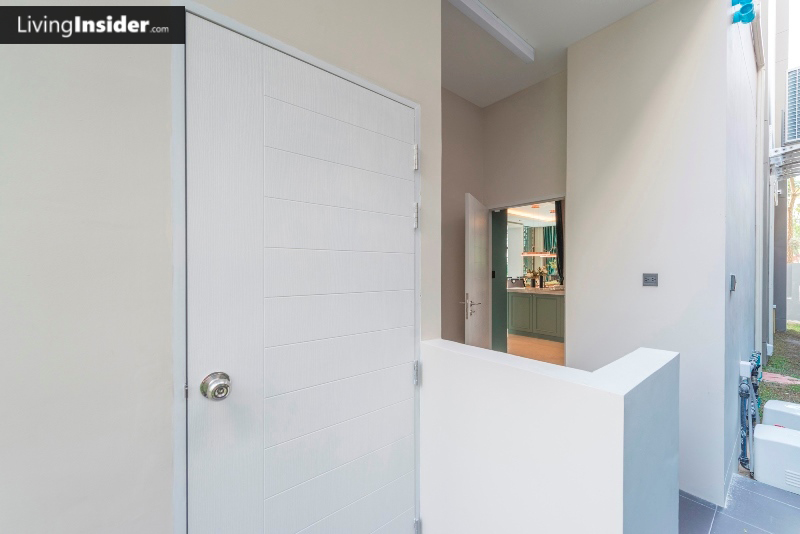 แน่นอนครับ บ้านระดับนี้ต้องมี maid แน่นอน โดยถัดจากครัวไทยจะเห็นว่ามีประตูห้องอยู่ ห้องนี้เป็นส่วนของห้อง maid ซึ่งจะมีห้องน้ำในตัว ดูจากขนาดห้องแล้ว ถ้า maid มีของไม่เยอะก็อยู่กันได้ถึง 2 คนแบบเบียดๆหน่อย แต่ถ้าเอาสบายๆคนนึงก็กำลังดี