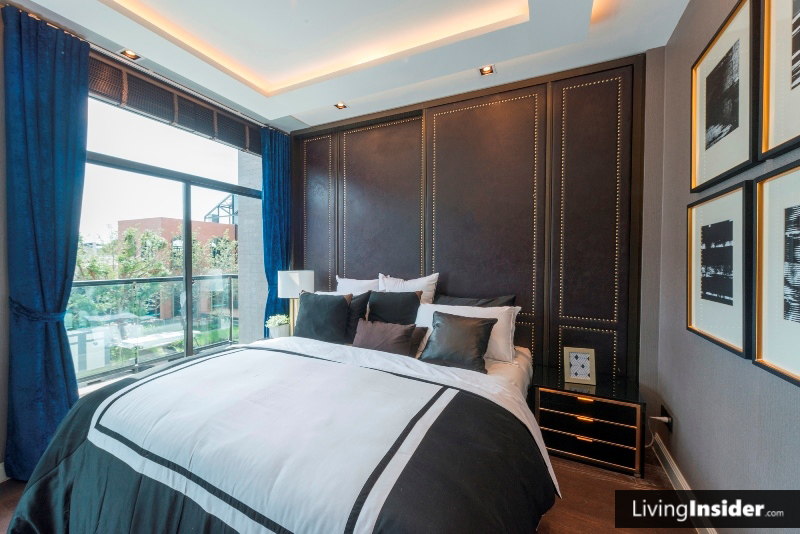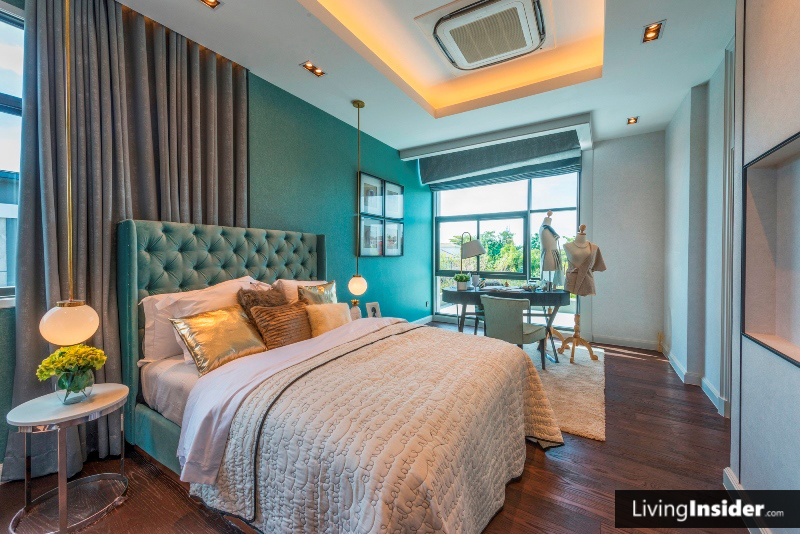 - ห้องนอนที่ 2 ลองสังเกตที่หน้าต่างนะครับ จะเห็นว่าม่านถูกเก็บพับขึ้นไปถึงเพดานเลย เพราะตรงนี้เค้าออกแบบหน้าต่างเป็นแบบ Skyline Window ที่จะเป็นกระจกขึ้นไปถึงมุมเพดานเลย ซึ่งจะช่วยให้เห็นมุมเปิดกว้างถึงท้องฟ้าด้านบนมากขึ้น ใครชอบนอนมองดูดาวตอนกลางคืนต้องชอบแน่ๆ