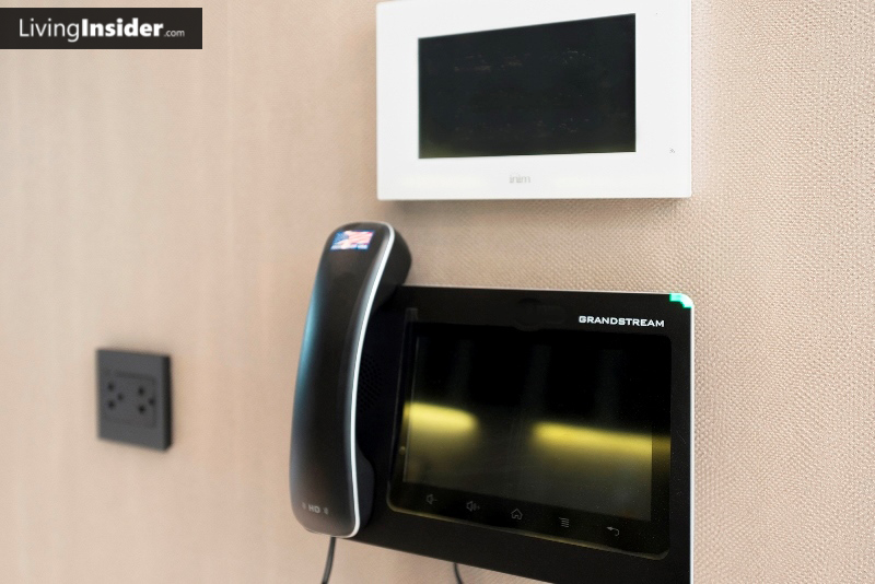 ส่วนเครื่องสีดำๆจะเป็น VDO Call phone ซึ่งเชื่อมต่อกับป้อม รปภ. หน้าหมู่บ้าน โดยถ้าเรามีแขกมาหาทางป้อมจะส่งสัญญาณภาพมาให้เราดูก่อนว่าเป็นใคร เพื่อจะให้เราอนุญาตว่าให้เข้ามาหาได้หรือเปล่า นอกจากนั้นทางโครงการยังติดตั้งกล้องวงจรปิดให้อีก 5 ตัวด้วย โดยจะมีที่หน้าบ้านหลังบ้านอย่างละจุด และ อยู่ในบ้านอีกชั้นละจุด