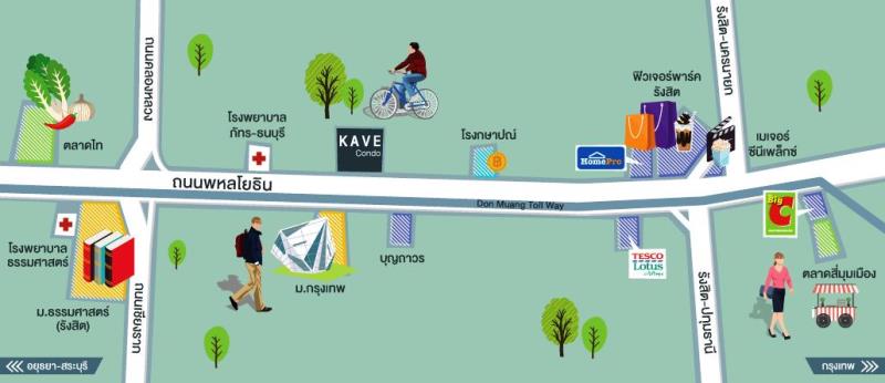 จะเห็นว่า Kave Condo (เคฟ คอนโด) ตอบโจทย์ผู้ทำงานหรือเรียน ที่ต้องการหาที่พักใกล้ๆ ม.กรุงเทพ ทุกข้อ ทุกประเด็น อย่างชัดเจน ไม่ใช่เฉพาะบุคคลากรของ ม. กรุงเทพเท่านั้น จริงๆคนที่ทำงานแถวๆนั้นก็เหมาะจะซื้อเป็นที่พักอาศัยเหมือนกันนะครับ เพราะเดินทางสะดวกและมีไลฟ์สไตล์อยู่รอบๆทั้ง Future Park ,Major Cineplex ,Tesco Lotus ,Big C ,Home Pro, ตลาดไท ,ตลาดสี่มุม เมือง ,เดินทางสะดวกใกล้ วงแหวนกาญจนาฝั่งตะวันออก ,ทางด่วนบางปะอิน ใกล้แหล่ง เศรษฐกิจ นิคมอุตสาหกรรมนวนคร ใกล้สถานพยาบาล โรงพยาบาลภัทรธนบุรี, โรงพยาบาลธรรมศาสตร์ ฯลฯ