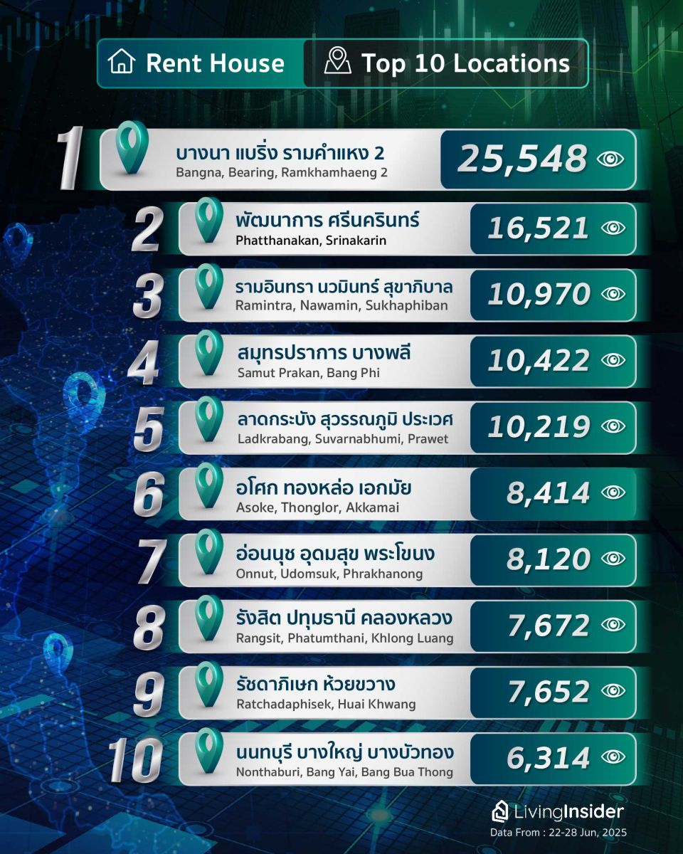 10 อันดับทำเล ►บ้าน ► หาเช่า