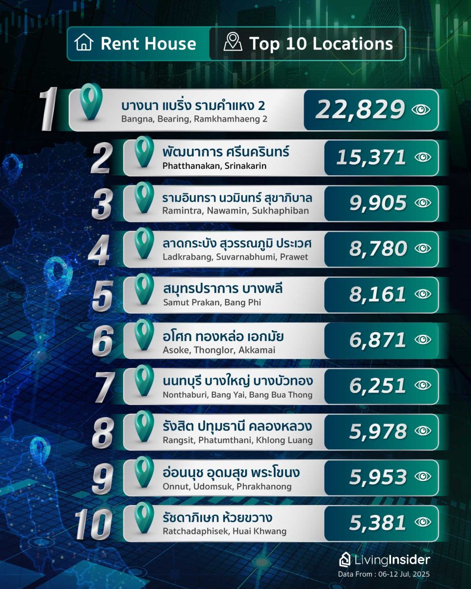 10 อันดับทำเล ►บ้าน ► หาเช่า