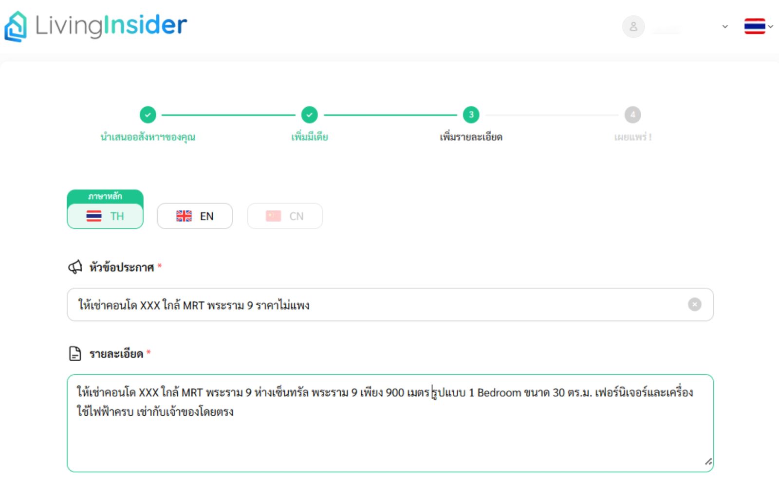 ไม่ว่าจะเป็นเจ้าของปล่อยเช่าเอง หรือนายหน้ามืออาชีพ หากคุณกำลังค้นหา เว็บลงประกาศให้เช่าคอนโดฟรี ที่ได้ผลจริง LivingInsider.com คือคำตอบที่มีทั้งปริมาณผู้ใช้งานสูง ระบบจัดการง่าย และมีเครื่องมือช่วยให้คุณหาผู้เช่าได้ไวอย่างมีประสิทธิภาพ