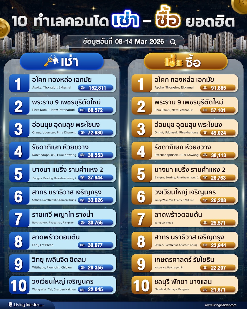 10 อันดับทำเล ►คอนโด ► หาเช่า หาซื้อ ยอดนิยม
