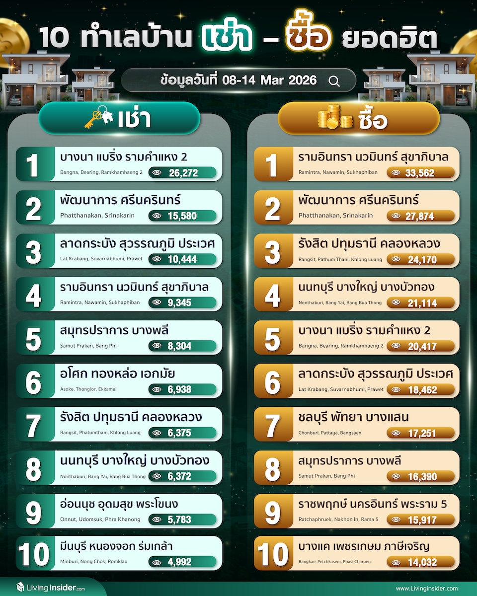 10 อันดับทำเล ►บ้าน ► หาเช่า หาซื้อ ยอดนิยม