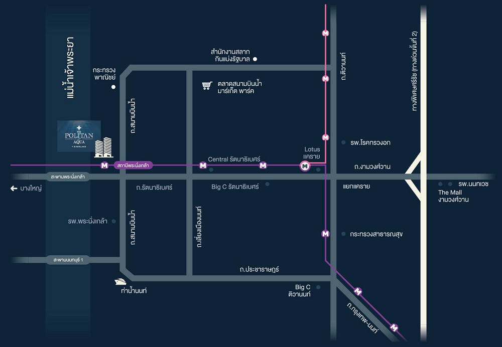 คอนโดริมแม่น้ำหาไม่ยาก แต่คอนโดที่ใกล้รถไฟฟ้าด้วย ริมแม่น้ำด้วย นับโครงการได้เลยครับ แถมราคาสูงมากด้วย หากมีงบประมาณเริ่มต้น 1.4-3.0 ล้านบาท ฝาก ‘The Politan Aqua’ ไว้ในอ้อมอกอ้อมใจ แค่ส่วนกลางก็กินขาดแล้ว 2 Club House + 3 สระ + Sky Lounge ตกแต่งอย่างอลังการ เทียบชั้นคอนโด Luxury ใจกลางเมือง แม้รอบโครงการจะไม่อุดมสมบูรณ์เท่าไหร่ แต่ .. ล่าสุดโครงการเพื่อนบ้านอย่าง ‘ศุภาลัย ซิตี้รีสอร์ท’ เริ่มโอนแล้ว เป็นตัวเร่งให้มีร้านสะดวกซื้อในบริเวณนี้ ก็รอติดตามดูกันไป