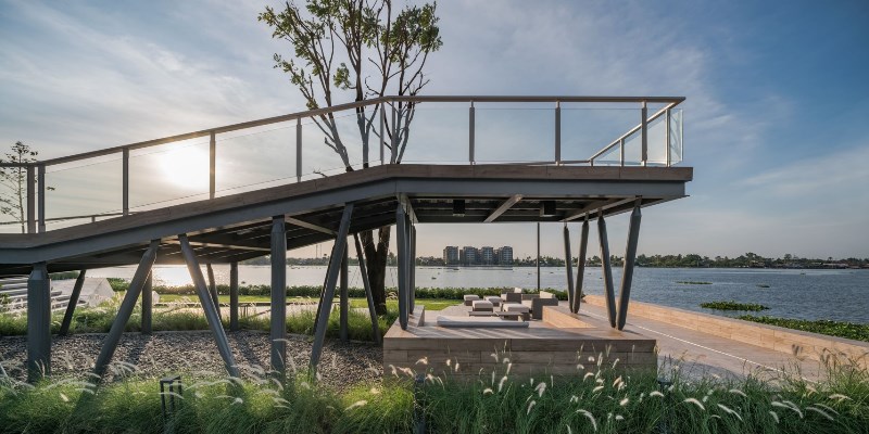 ยังไม่พอแค่นั้น ชั้น 2 ของ Club House คือพื้นที่สันทนาการ (Social Club, Co-Working Space, Game room, Golf simulator) และชั้น 3 เป็นดาดฟ้า Outdoor Terrace ให้ชมวิวแม่น้ำกันได้ 180 องศา
