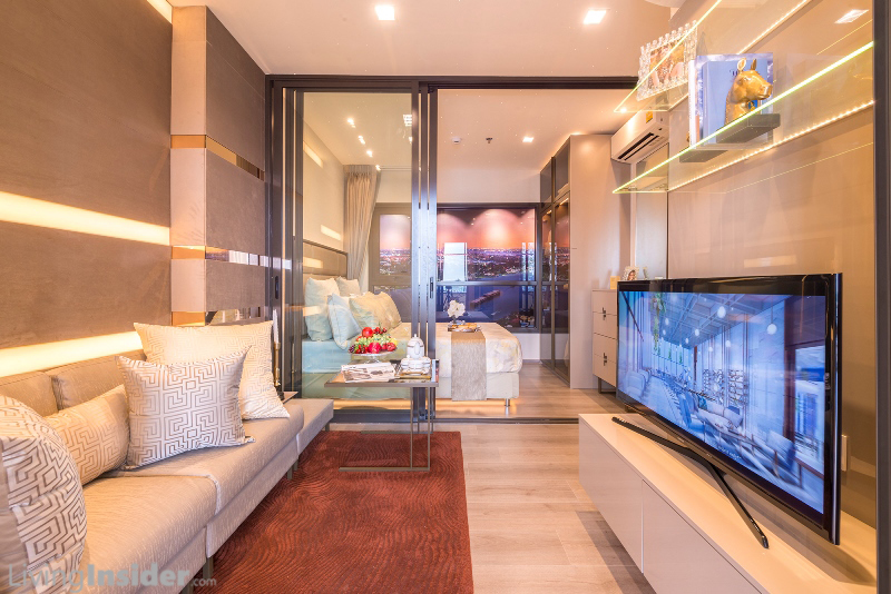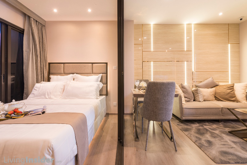 เปิดห้องมาจะพบกับส่วน Living ส่วน Bedroom วางเตียงขนาด Queen Size ได้