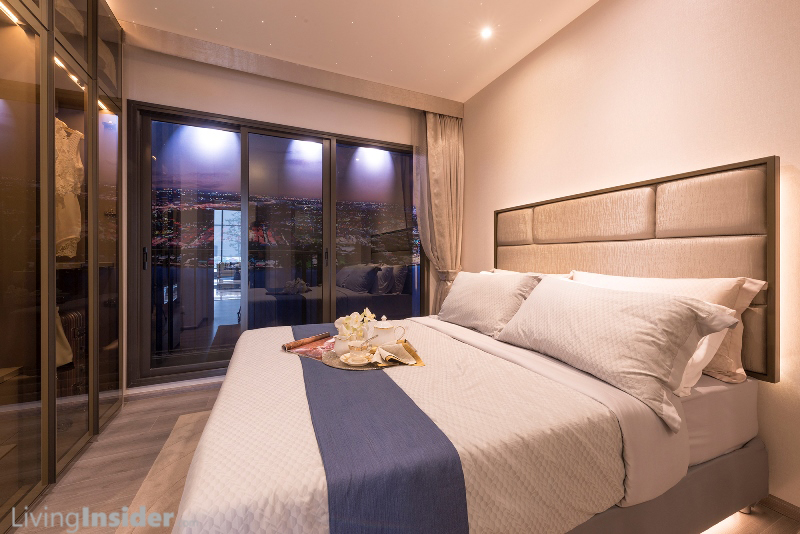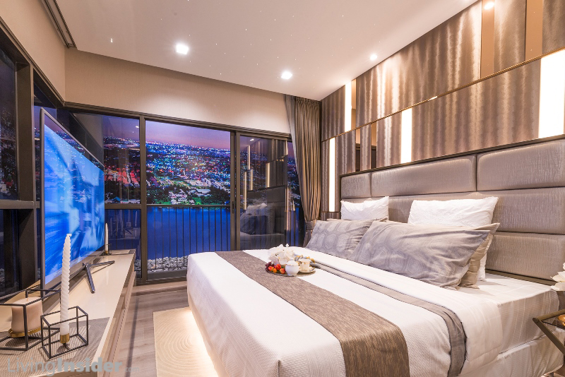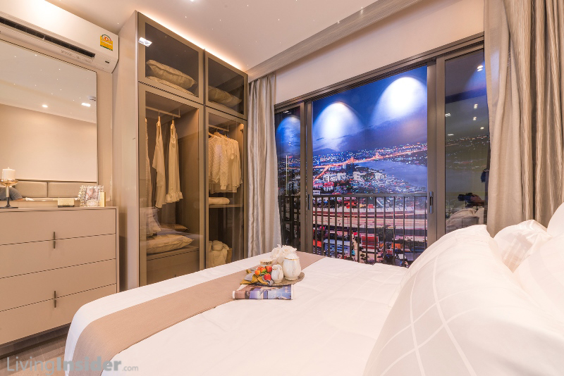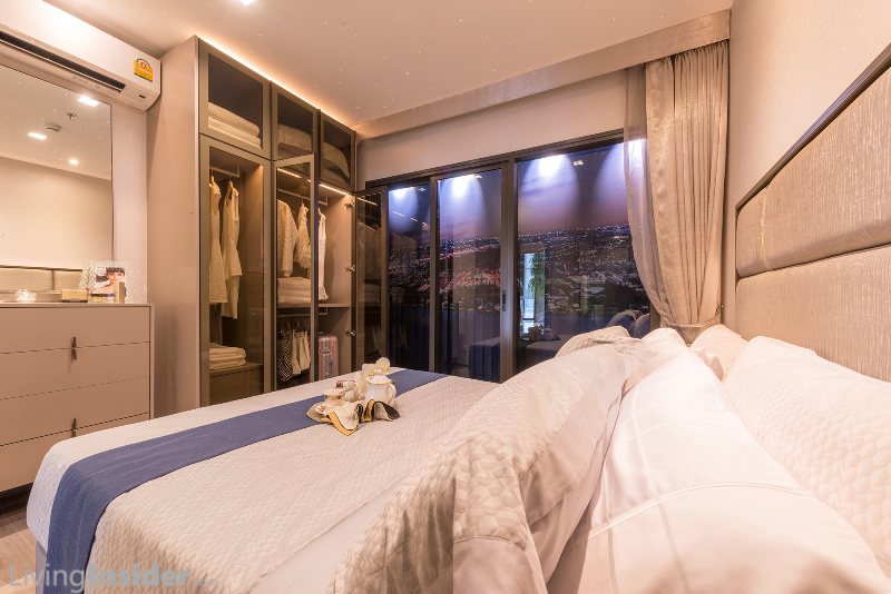 ห้องนอนใหญ่ มีห้องน้ำในตัว สามารถวางเตียง King Size ตู้เสื้อผ้าขนาดใหญ่ - โต๊ะเครื่องแป้งขนาดเล็ก ด้านนอกล้อมรอบด้วยระเบียง L-Shape เห็นวิว 180 องศา (ตื่นเช้ามาเห็นวิวเมือง + วิวแม่น้ำ ฟินมาก)