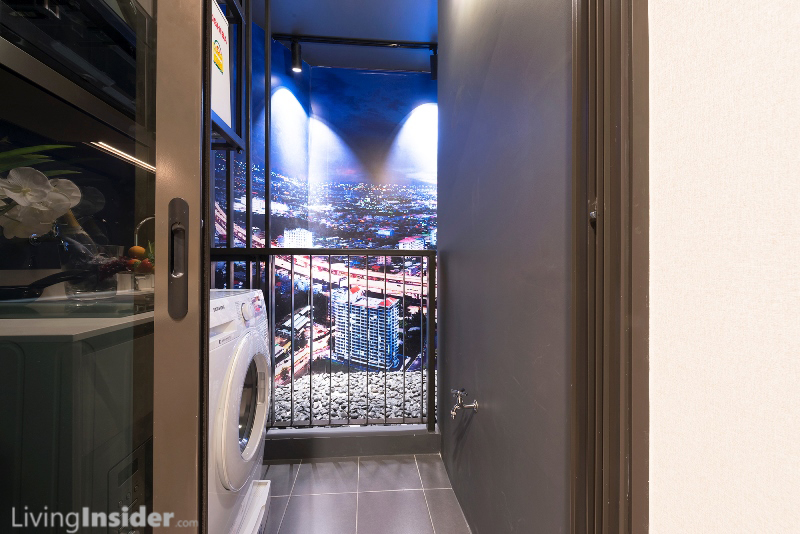 Layout ยูนิต 29 ตรม. เน้นพื้นที่ห้องนอน / ส่วนครัวมากเป็นพิเศษ ทุกส่วนมีประตูกั้นครับ สามารถทำครัว ต้มผัดแกงทอดสบายๆ มีระเบียงห้องนอน - ระเบียงซักล้างแยกต่างหาก ห้องนอนสามารถวางโต๊ะเครื่องแป้ง หรือโต๊ะทำงานได้ อย่างไรก็ดี การเข้าห้องน้ำต้องเดินผ่านห้องนอน อาจไม่เป็นส่วนตัวเท่าไหร่ หากเชิญแขกมาสังสรรค์ที่ห้อง