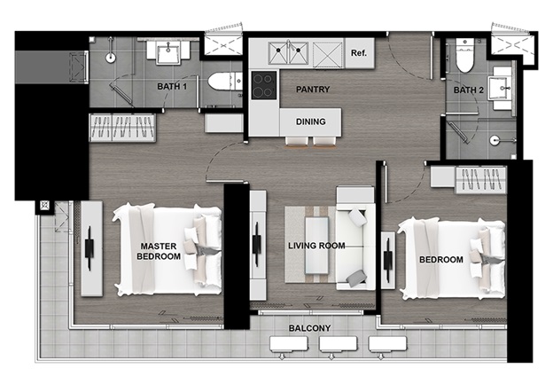 Type D : 60 ตรม. (2-Bedroom)