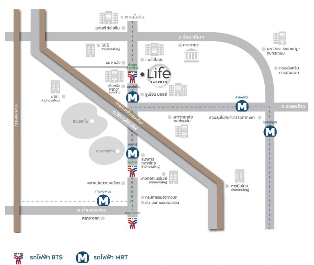 นี่ขนาดปัจจุบันก็มีให้เกินพอแล้วนะครับ แต่ในอนาคตอีกไม่น่าเกิน 2 ปี จะมีสิ่งสำคัญที่ทำให้ให้ย่านนี้ก้าวกระโดดเป็น CBD ไม่ต่างจากย่านธุรกิจใจกลางกรุงเทพ สิ่งนั้นคือ รถไฟฟ้าสายสีเขียวที่เชื่อมต่อ หมอชิต-คูคต ที่เริ่มก่อสร้างแล้ว ซึ่งผมจะบอกว่า ตัวคอนโด Life ลาดพร้าว อยู่แทบจะติดสถานีเลยครับ