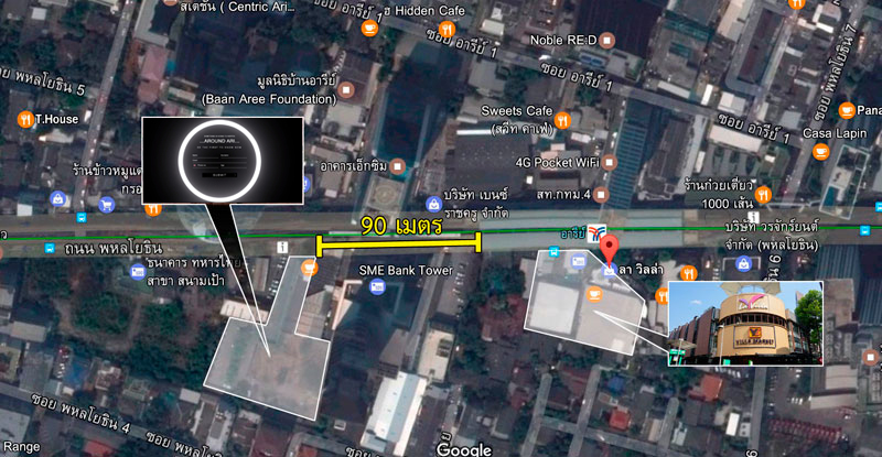 เมื่อกล่าวถึงย่านอารีย์ทุกคนจะนึกถึงสัญลักษณ์ของย่านนี้อย่าง La Villa ที่ติดกับรถไฟฟ้า BTS ซึ่งต้องบอกว่า โครงการ "Noble Around อารีย์" ตัวโครงการจะอยู่ห่างจาก La Villa และสถานีรถไฟฟ้าเพียงแค่ 90 เมตรเท่านั้น