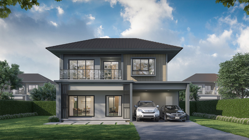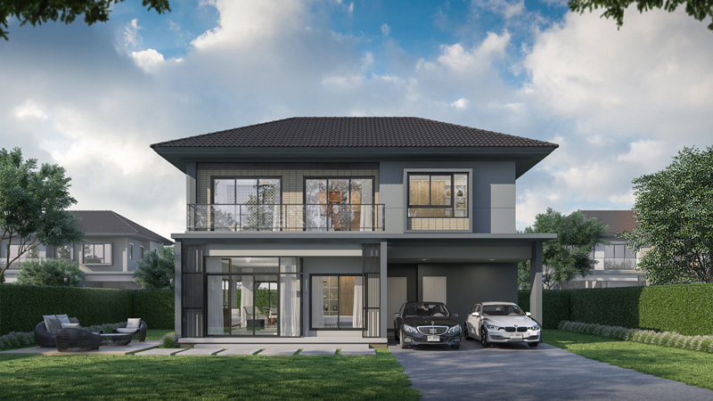 บ้านเดี่ยว KANZEN พื้นที่ใช้สอย 214 ตร.ม. ที่ดินเริ่มต้น 50.3 ตร.วา3 ห้องนอน 3 ห้องน้ำ 2 ส่วนพักผ่อน 1 Multi–Purpose room 2 จอดรถ มีพื้นที่ใช้สอยหลากหลายมากขึ้น เช่น Living Room, Family Room, Multi-Purpose Room, Kitchen และ Laundry Room ราคาเริ่มต้น 7.99 ล้านบาท